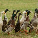 "The ducks tat had edged up to the front of the car, and were forming a ladder. One duck after another, formed a bridge to the bonnet, and oh... as they reached it, the last duck climbed on top of the rest. He was a big black and white Muscovy we locals call Edwin".